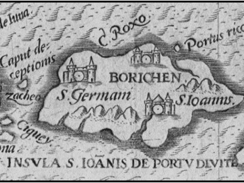 “Llaman los indios Boriquen á la isla que agora los chripstianos llaman Sanct Johan, la qual está al Oriente desta Isla Española, veynte é çinco ó treynta leguas”.[19]